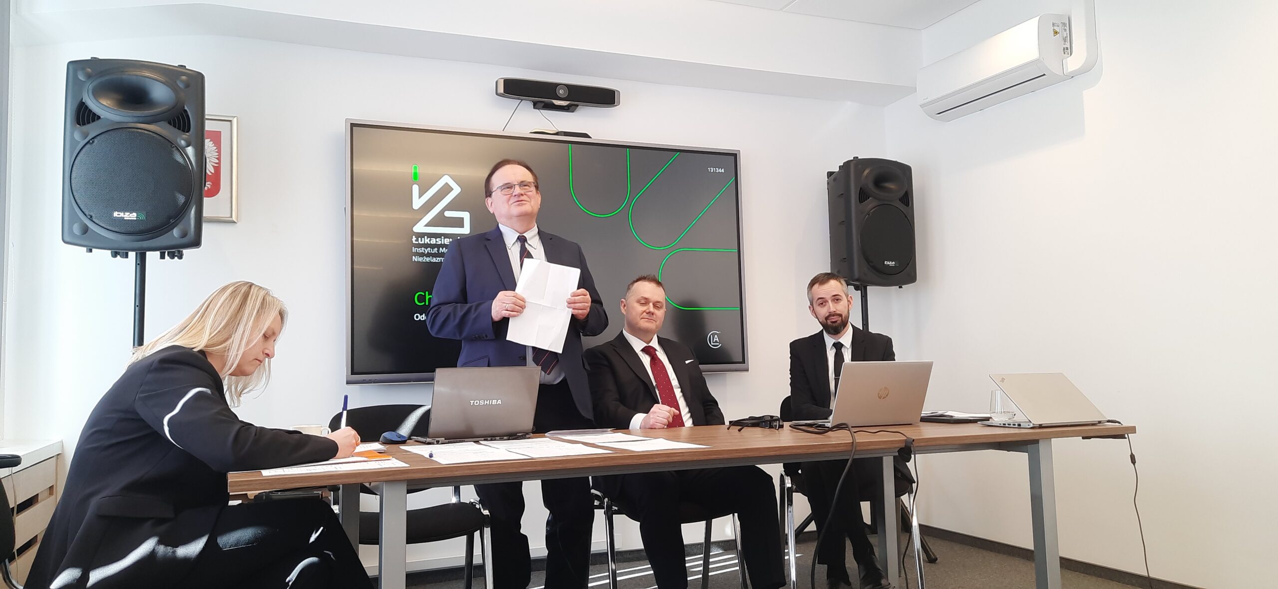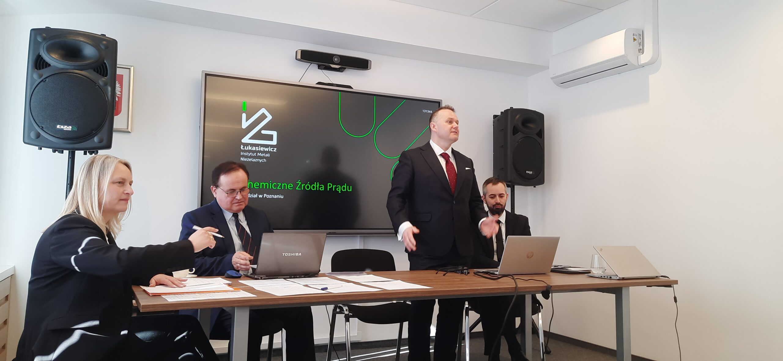 Dyrektor Instytutu – prof. Grzegorz Lota, zapoznał członków Komitetu z historią oraz specyfiką działalności jednostki, którą kieruje. W swoim wystąpieniu prof. Lota podkreślił także strategiczne znaczenie placówki jako kluczowego producenta baterii termicznych oraz ich zastosowania w przemyśle obronnym. Omówiono także specjalistyczne usługi badawcze świadczone przez Instytut, stanowiące istotne wsparcie dla krajowego sektora technologicznego. Placówka posiada unikalne w skali kraju kompetencje, w tym dostarcza certyfikowane akumulatory dla lotnictwa i systemów ratowniczych, realizuje projekty europejskie dotyczące nowej generacji ogniw litowo-jonowych i recyklingu materiałów anodowych oraz dysponuje akredytowanym laboratorium do badań bezpieczeństwa i wydajności ogniw zgodnie z normami UE.